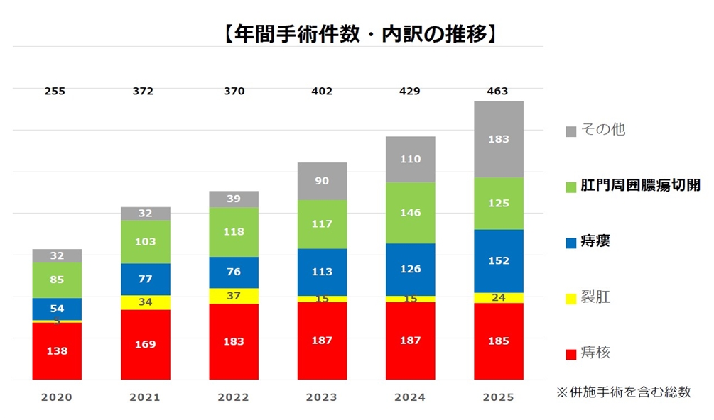2025年度1年間の日帰り肛門手術および内視鏡検査の実績を報告します。